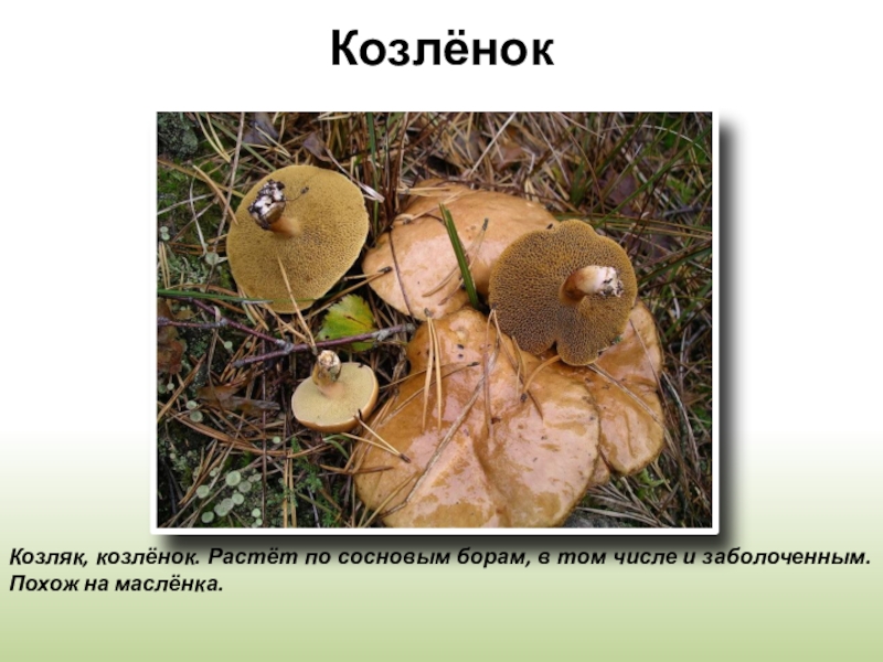 Козляк, козлёнок. Растёт по сосновым борам, в том числе и заболоченным.