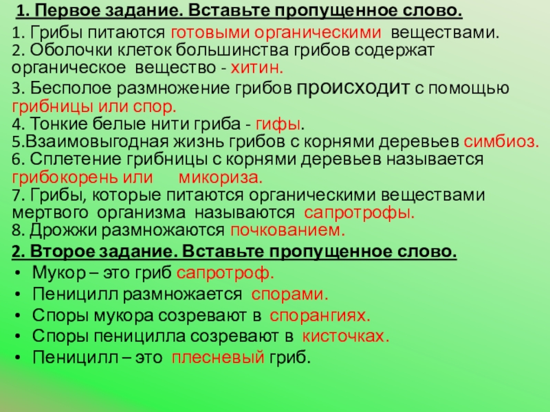 2. Второе задание. Вставьте пропущенное слово.