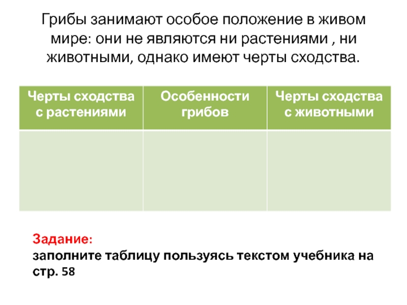 заполните таблицу пользуясь текстом учебника на стр. 58