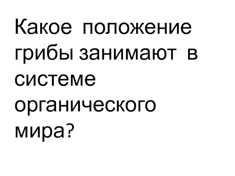 Слайд 2Какое положение грибы занимают в системе органического мира?