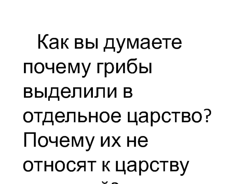 Слайд 7 Как вы думаете почему грибы выделили в отдельное царство?