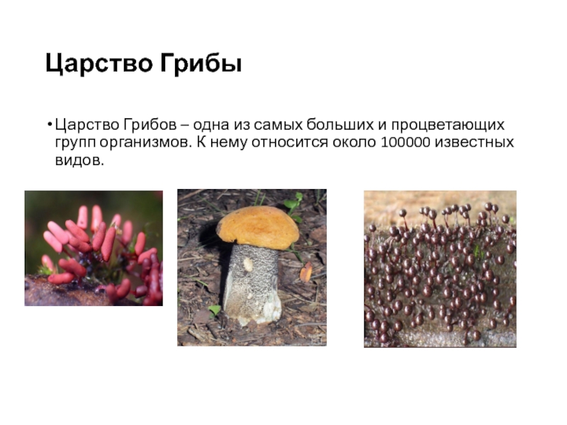 Царство ГрибыЦарство Грибов – одна из самых больших и процветающих групп организмов. К нему относится около 100000