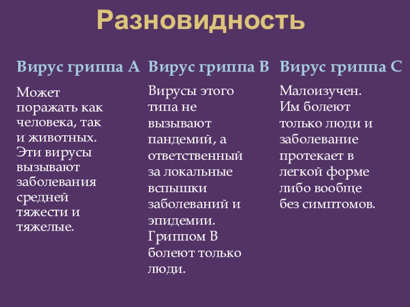 Вирусы этого типа не вызывают пандемий, а ответственный за локальные вспышки заболеваний и эпидемии. Гриппом В болеют только люди.