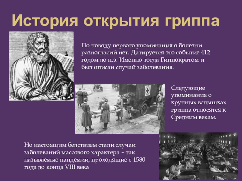 Следующие упоминания о крупных вспышках гриппа относятся к Средним векам.