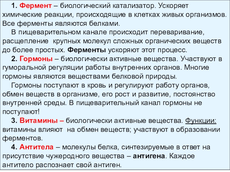 Ферментативную, транспортную, строительную, защитную функции в клетке выполняют молекулы