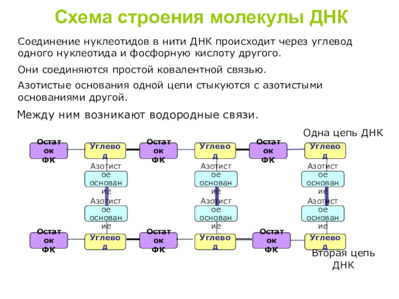 Азотистые основания одной цепи стыкуются с азотистыми основаниями другой.