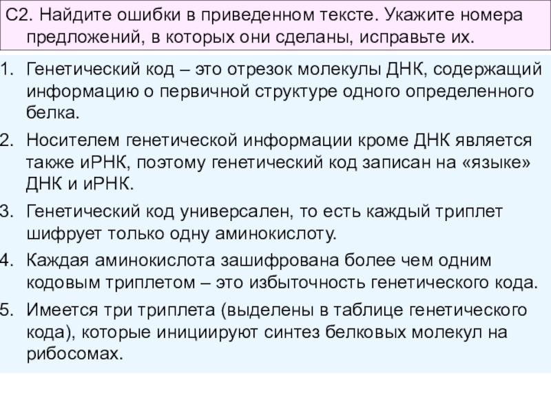Носителем генетической информации кроме ДНК является также иРНК, поэтому генетический код записан на «языке» ДНК и иРНК.