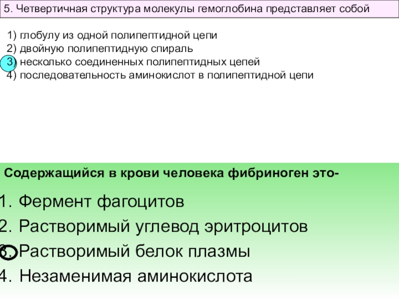 5. Четвертичная структура молекулы гемоглобина представляет собой