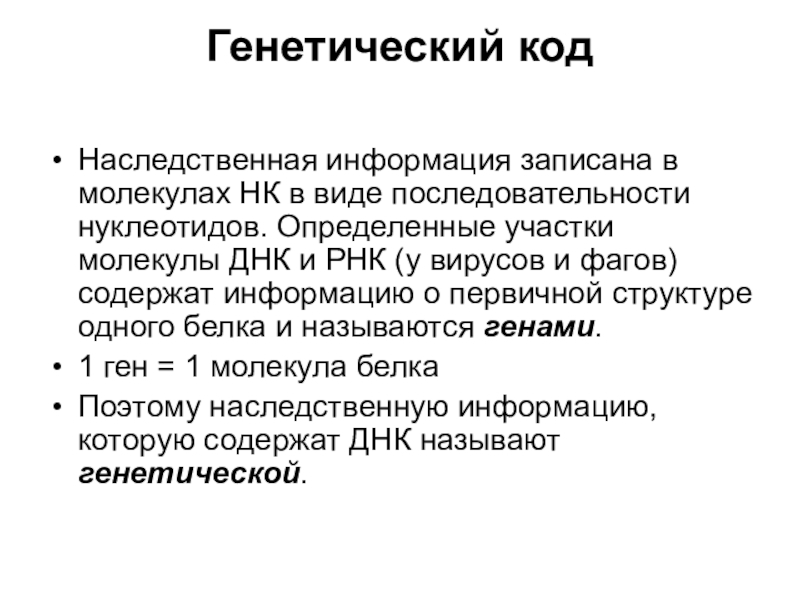 Генетический код – система записи генетической информации в виде последовательности нуклеотидов в молекуле ДНК.