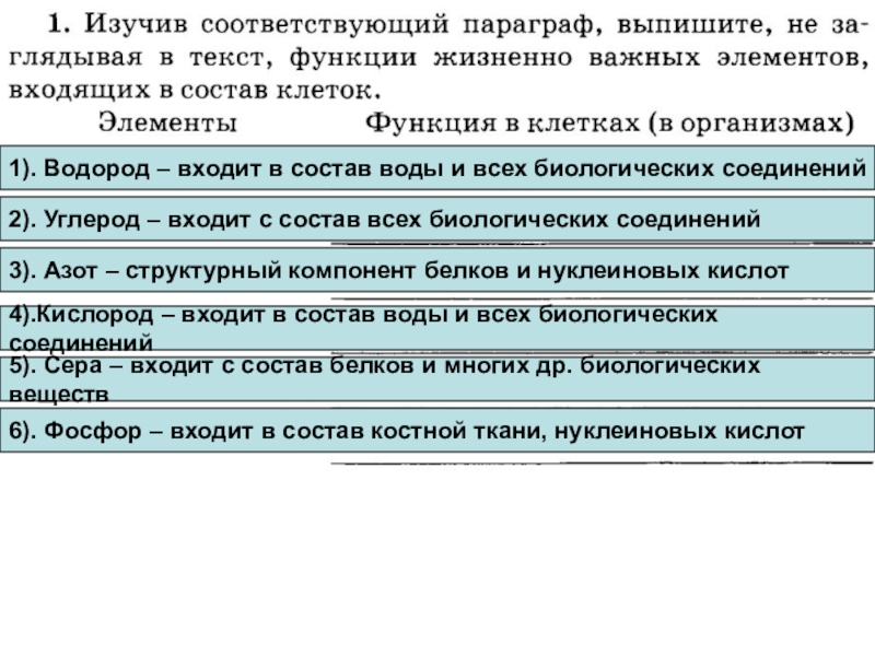 5). Сера – входит с состав белков и многих др. биологических веществ