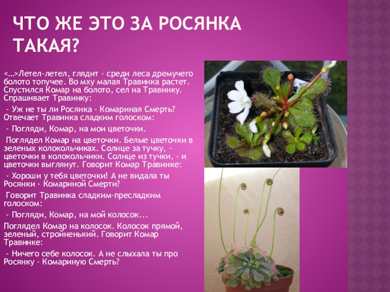 - Хороши у тебя цветочки! А не видала ты Росянки - Комариной Смерти?