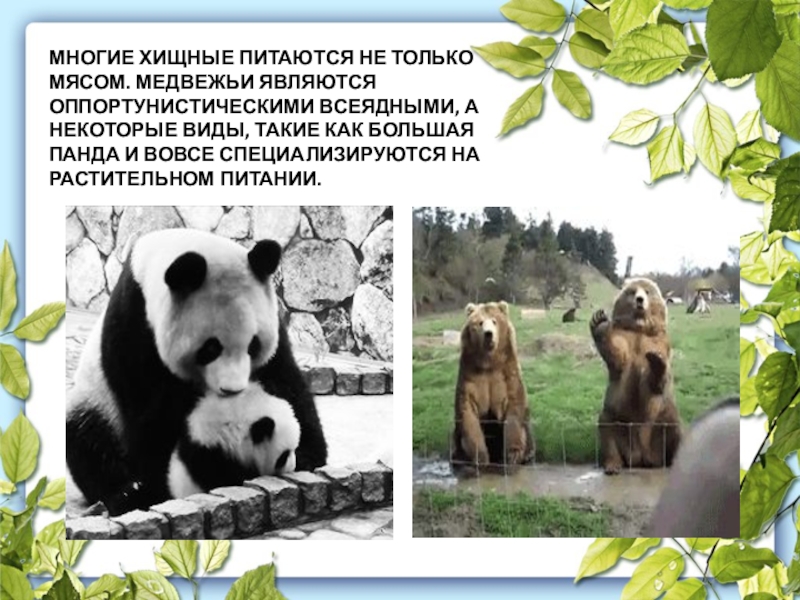 Слайд 3МНОГИЕ ХИЩНЫЕ ПИТАЮТСЯ НЕ ТОЛЬКО МЯСОМ. МЕДВЕЖЬИ ЯВЛЯЮТСЯ