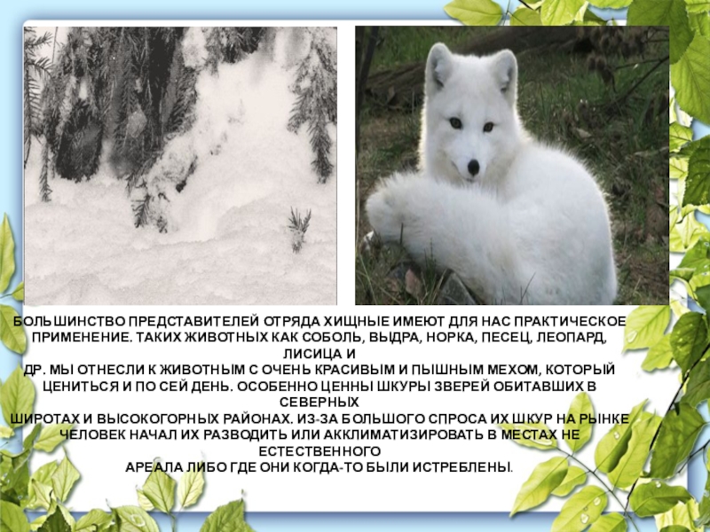 Слайд 10БОЛЬШИНСТВО ПРЕДСТАВИТЕЛЕЙ ОТРЯДА ХИЩНЫЕ ИМЕЮТ ДЛЯ НАС ПРАКТИЧЕСКОЕ