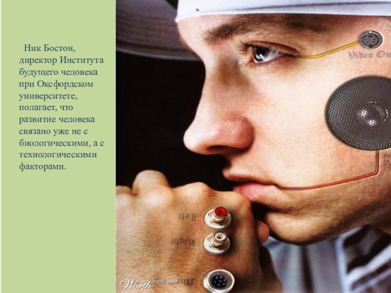 Слайд 24Одной из основных научных версий - Человек будущего будет неотделим от