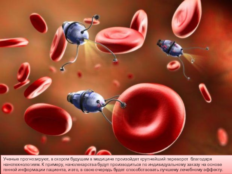 Слайд 26Ученые прогнозируют, в скором будущем в медицине произойдет крупнейший переворот благодаря
