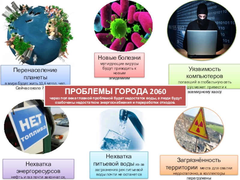 Слайд 38А это плохая экология, нехватка питьевой воды, продуктов питания, появление новых