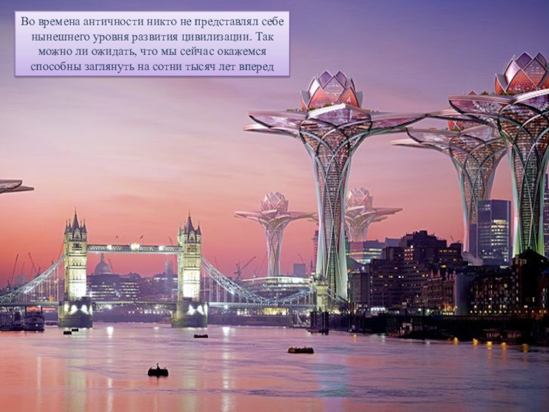 Слайд 7Во времена античности никто не представлял себе нынешнего уровня развития цивилизации.