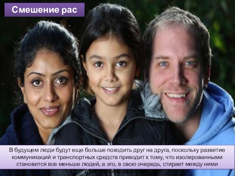 Слайд 15В будущем люди будут еще больше походить друг на друга, поскольку