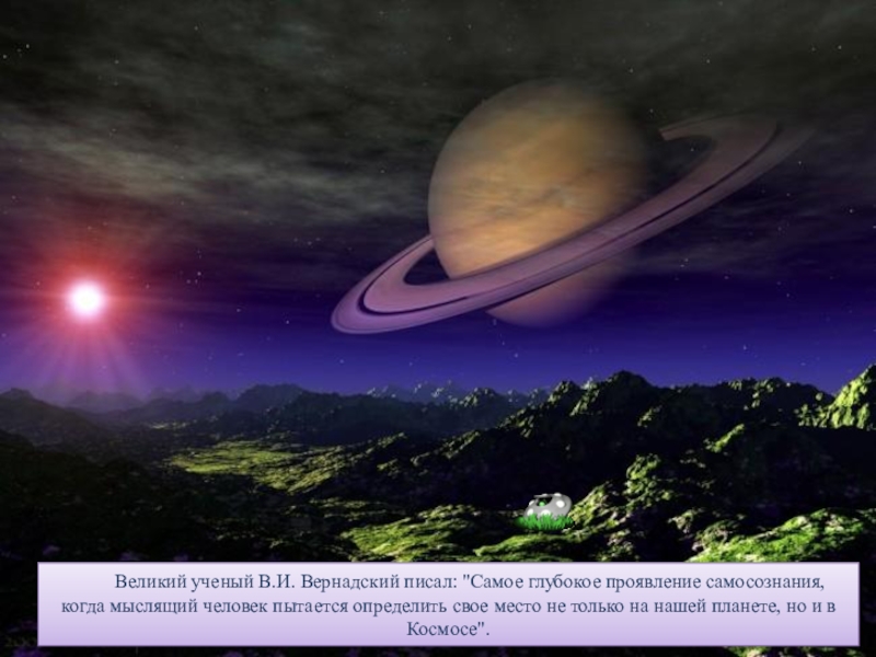 Слайд 40 Великий ученый В.И. Вернадский писал: "Самое глубокое проявление самосознания, когда мыслящий