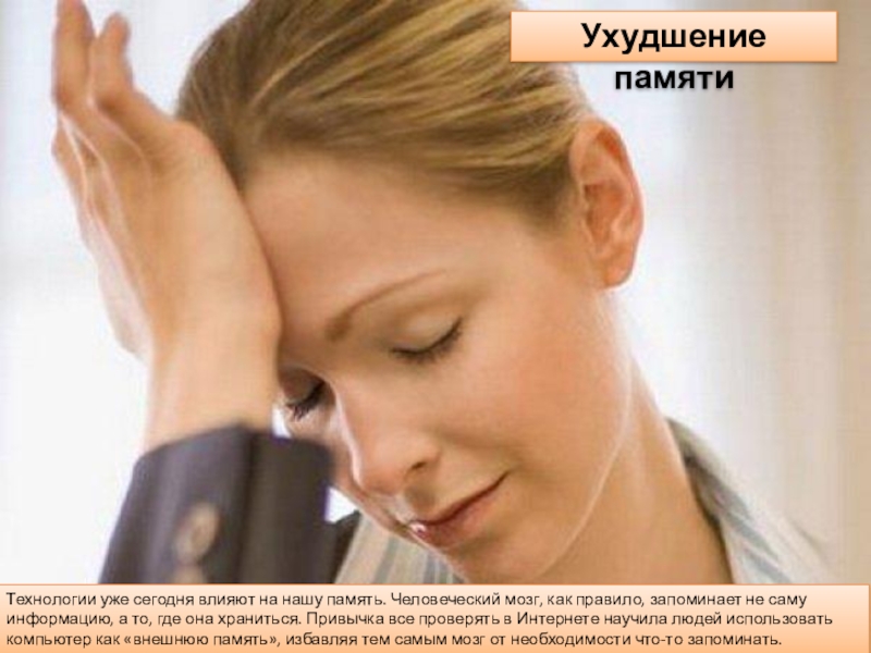 Слайд 21Технологии уже сегодня влияют на нашу память. Человеческий мозг, как правило,