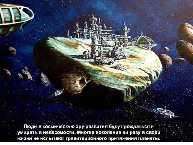 Слайд 42Люди в космическую эру развития будут рождаться и умирать в невесомости.