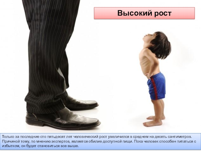 Слайд 16Только за последние сто пятьдесят лет человеческий рост увеличился в среднем