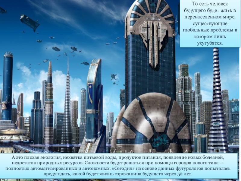 То есть человек будущего будет жить в перенаселенном мире, существующие глобальные проблемы в котором лишь усугубятся.