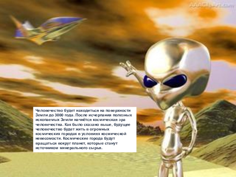 Слайд 41Человечество будет находиться на поверхности Земли до 3000 года. После исчерпания