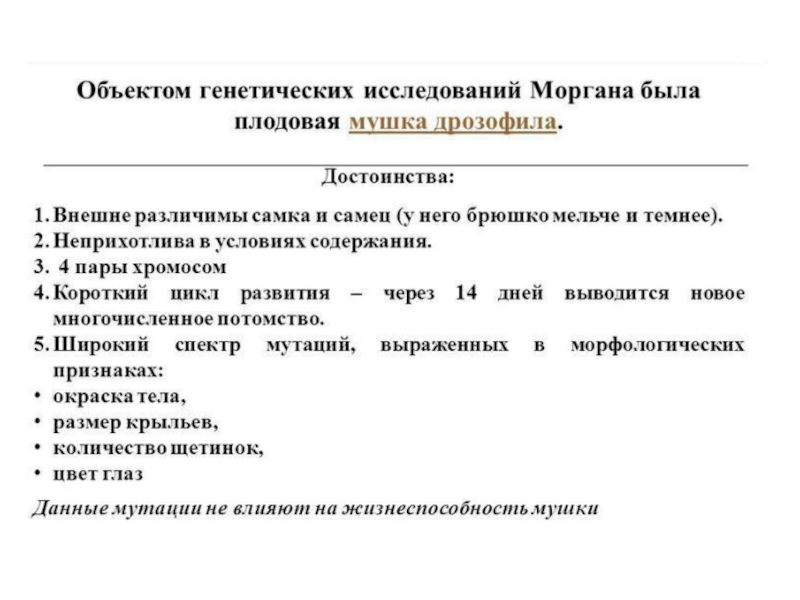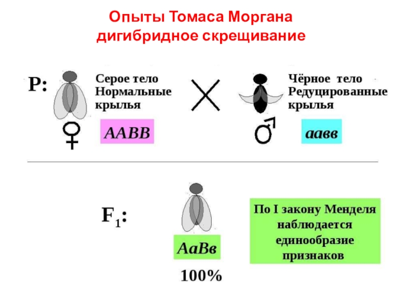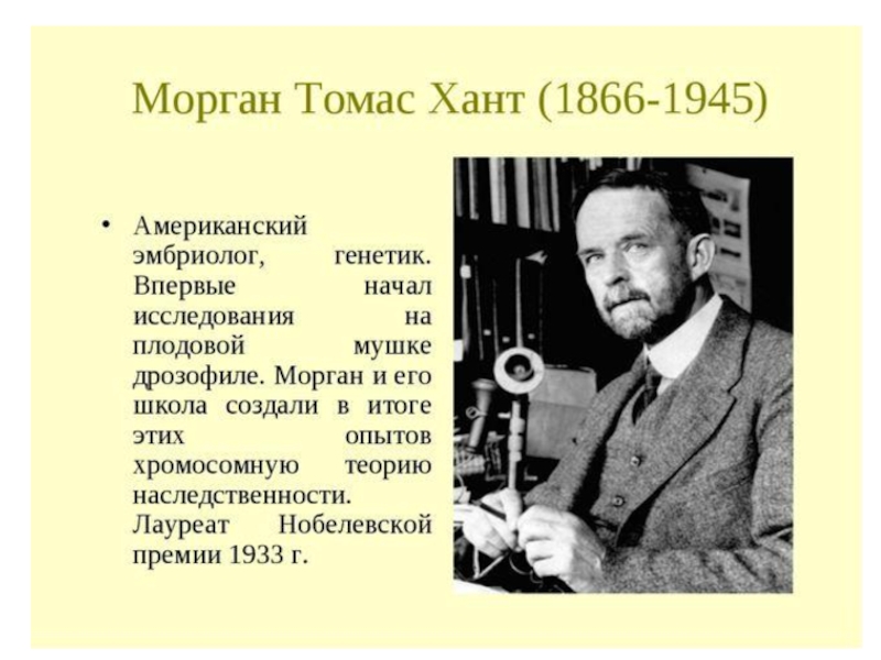 Морган сформулировал закон нарушения сцепления между генами - Сцепление между генами может нарушаться в результате кроссинговера – рекомбинации генов в гомологичных хромосомах в процессе мейоза.