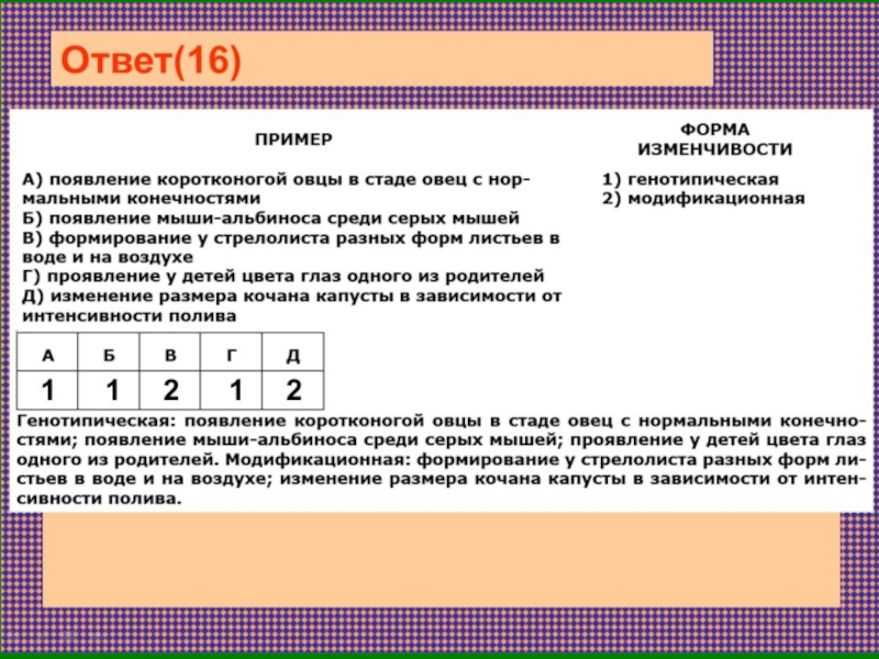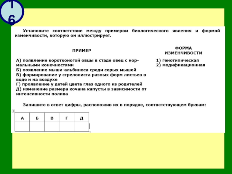 Презентация, доклад по биологии на тему: Иллюстрированный тренажёр для подготовки к 16-му заданию ЕГЭ по биологии (11 класс)