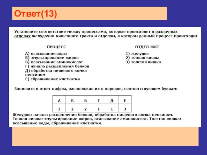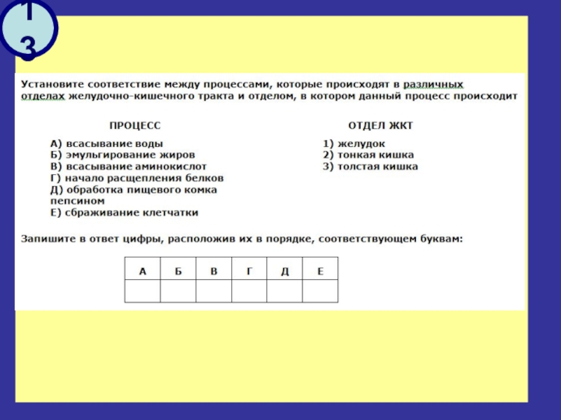 Презентация, доклад по биологии на тему: Иллюстрированный тренажёр для подготовки к 13-му заданию ЕГЭ по биологии (11 класс)