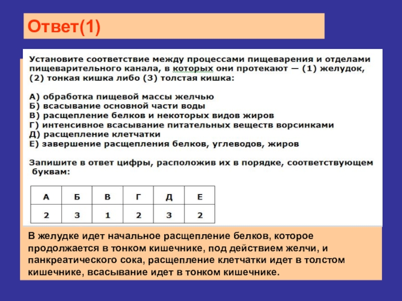 Ответ(1)В желудке идет начальное расщепление белков, которое продолжается в тонком кишечнике, под действием желчи, и панкреатического сока,