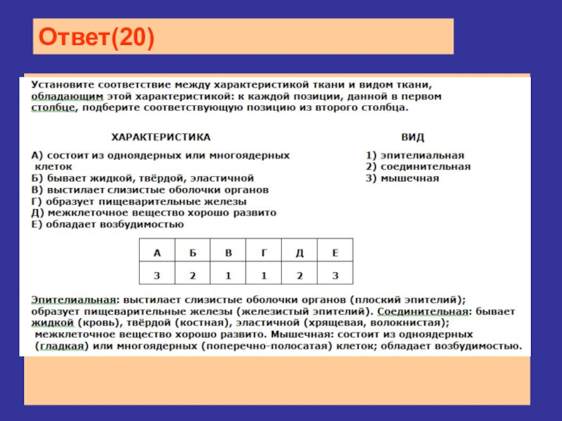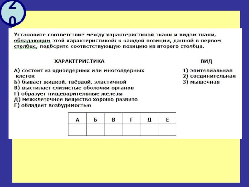 Тема заданияОрганизм человека. Ткани.Органы. Системы органов. Гигиена человека        Тип заданияУстановление