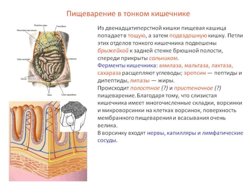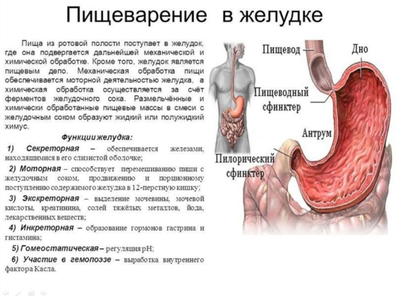 В желудке идет начальное расщепление белков, которое продолжается в тонком кишечнике,