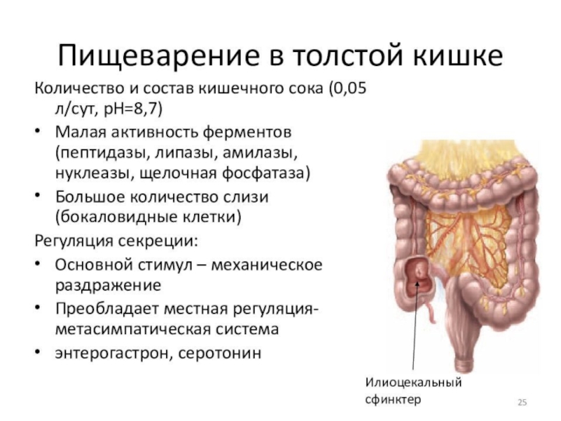 под действием желчи, и панкреатического сока, расщепление клетчатки идет в толстом кишечнике, всасывание идет в тонком кишечнике.