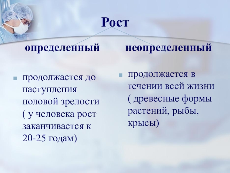 продолжается в течении всей жизни ( древесные формы растений, рыбы, крысы)