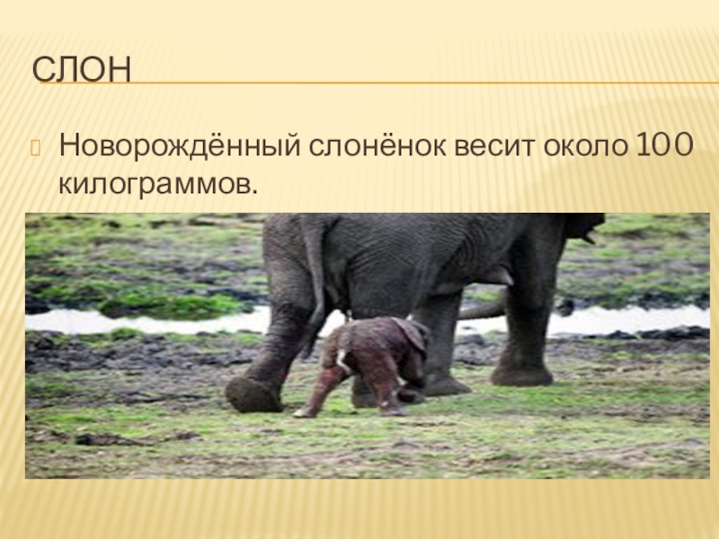 слонНоворождённый слонёнок весит около 100 килограммов.Подробнее на странице