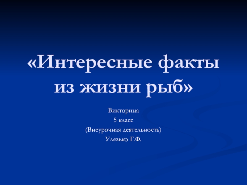 «Интересные факты из жизни рыб»Викторина 5 класс(Внеурочная деятельность)Улезько Г.Ф.