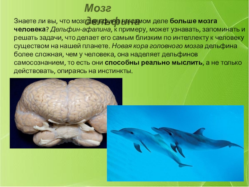 Знаете ли вы, что мозг дельфина на самом деле больше мозга
