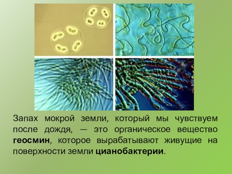 Слайд 6Запах мокрой земли, который мы чувствуем после дождя, — это органическое