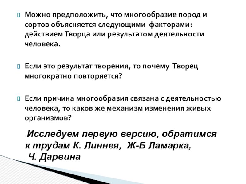 .Исследуем первую версию, обратимся к трудам К. Линнея, Ж-Б Ламарка,