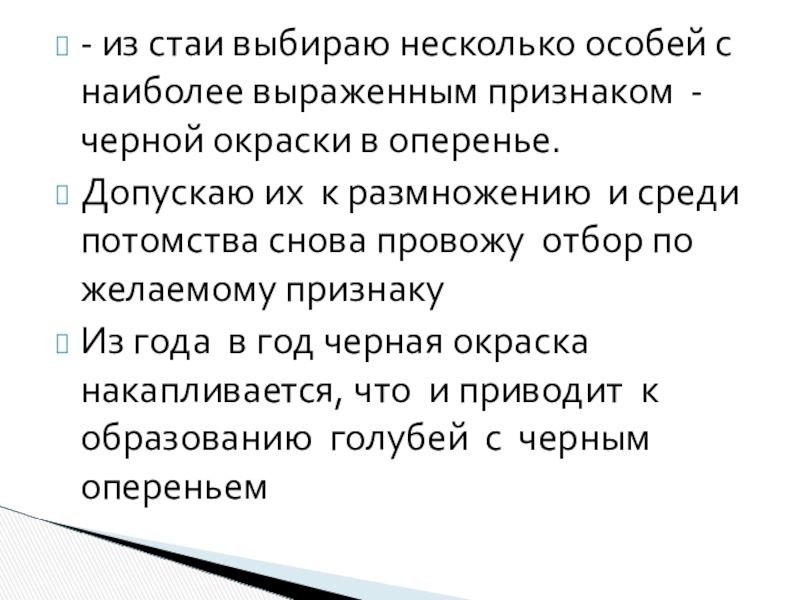 Выбирают отдельную особь с интересующим человека признаком и получают от нее потомство