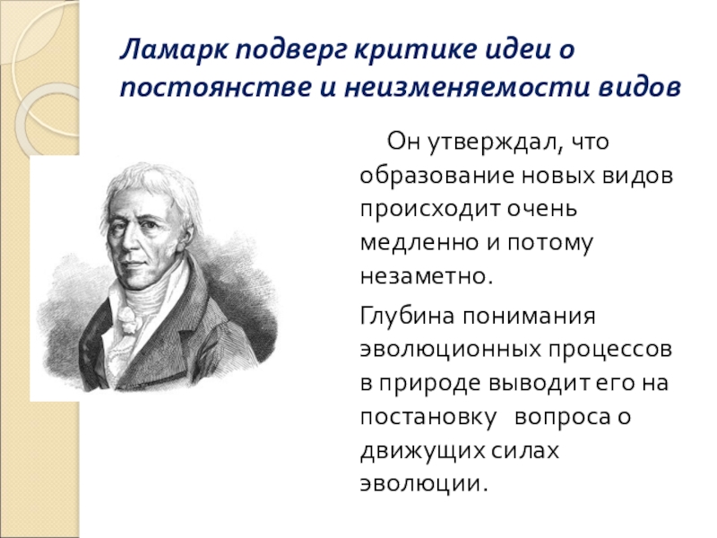 Каждый вид он считал результатом отдельного творческого акта, неизменным и постоянным, не связанным с другими видами родством.