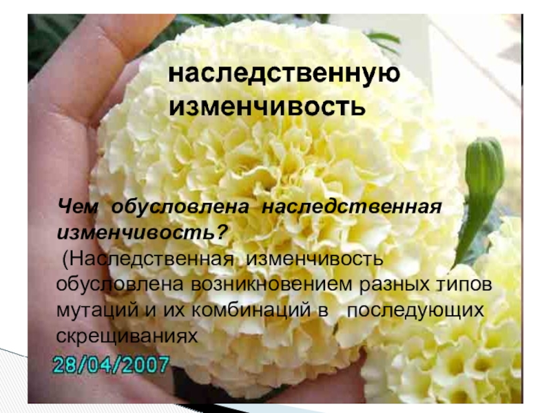 Чем обусловлена наследственная изменчивость?  (Наследственная изменчивость обусловлена возникновением разных типов мутаций и их комбинаций в