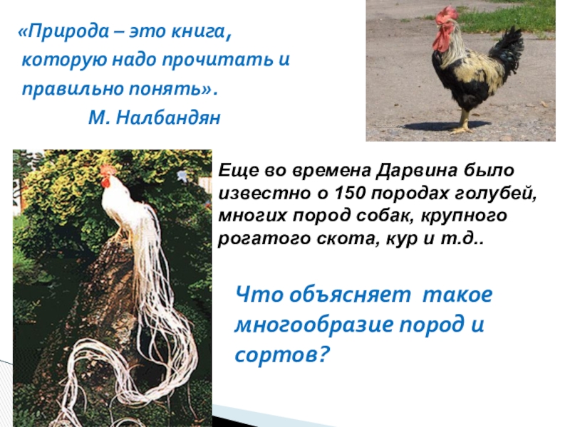 Еще во времена Дарвина было известно о 150 породах голубей, многих пород собак, крупного рогатого скота, кур и т.д..
