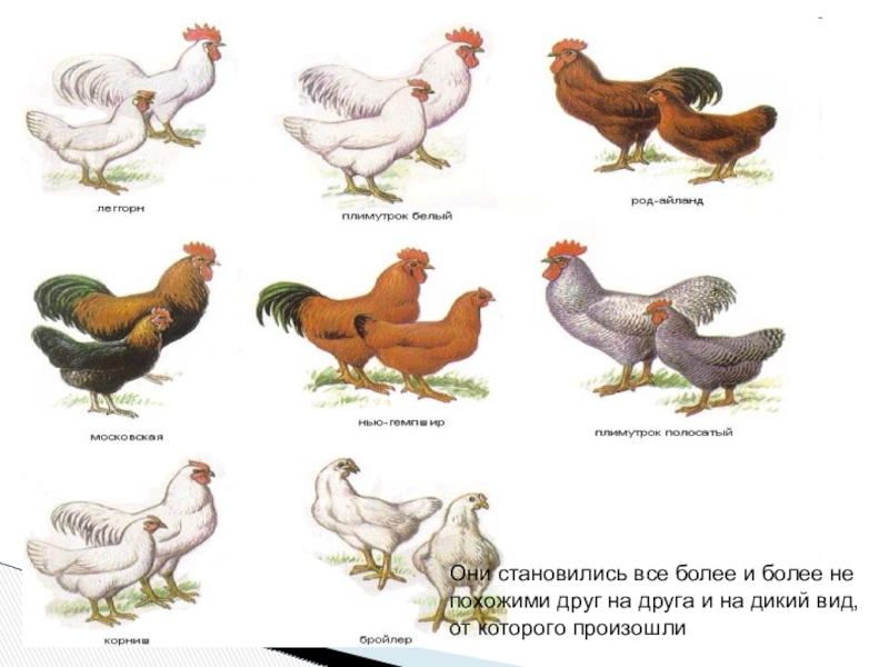 Слайд 15Породы и сорта, происходящие от общих диких предков, развиваются под влиянием
