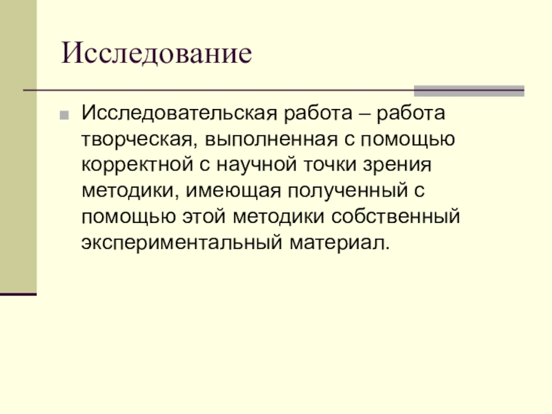 Исследовательская работа – работа творческая, выполненная с помощью корректной с научной