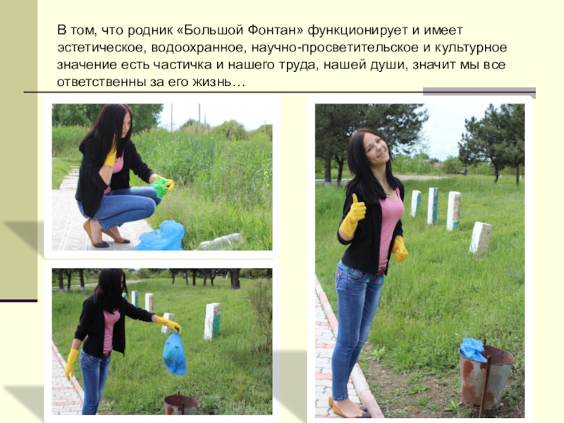 Слайд 20В том, что родник «Большой Фонтан» функционирует и имеет эстетическое, водоохранное,