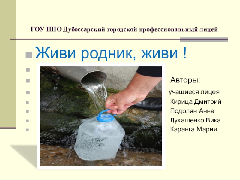 сохраним для города источник качественной воды. И кроме того реализуем свой творческий исследовательский потенциал.