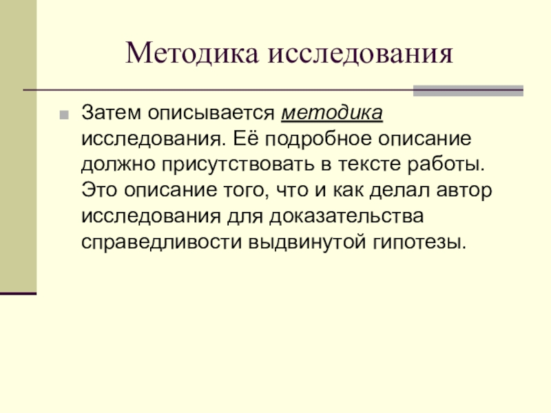 тексте работы. Это описание того, что и как делал автор исследования для доказательства справедливости выдвинутой гипотезы.